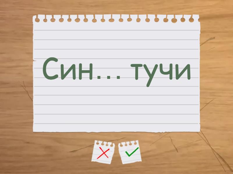 Зимн… дорога - Зимняя дорога, Жёлт… карандаш - Жёлтый карандаш, Русск… солдат - Русский солдат, Горяч… молоко - Горячее молоко, Вечерн… заря - Вечерняя заря, Летуч… мышь - Летучая мышь, Венн… облака - Весенние облака, Ранн… утро - Раннее утро, Сладк… варенье - Сладкое варенье , Син… тучи - Синие тучи, Летн… гроза - Летняя гроза, Ближн… деревня - Ближняя деревня,