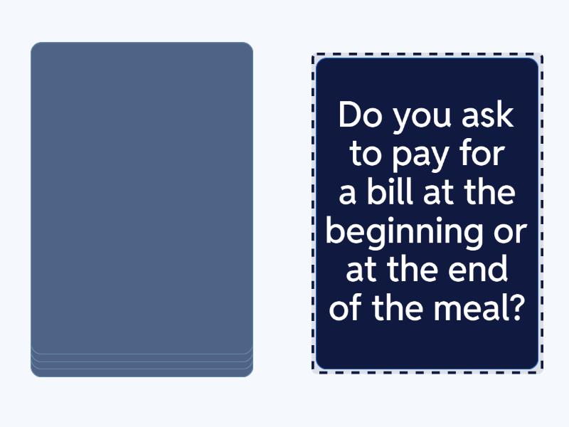 Do you prefer cafes with big or small menu? Why?, What dishes do you order at a cafe most often?, Do you usually leave tips? How much?, Do you ask to pay for a bill at the beginning or at the end of the meal?, Do you know any famous chefs?.