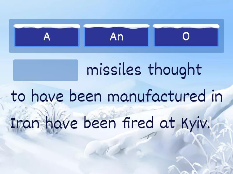 ____ missiles thought to have been manufactured in Iran have been fired at Kyiv. ____ man who was caught breaking into the base has been charged with terrorism. ____ Soldiers off-duty, often meet up in the Rynek Glowny. I put ____ dog in the garden as his barking is driving me crazy. The report claims that ____ tanks in high-readiness have been sent to the border areas. At ____ end of the conference I was brain-dead. Look at ____ moon; - it's huge tonight. ____ People often complain about the police, until they need them. ____ largest planet in our solar-system is Jupiter. I haven't had a cold since ____ last time I caught a bus.