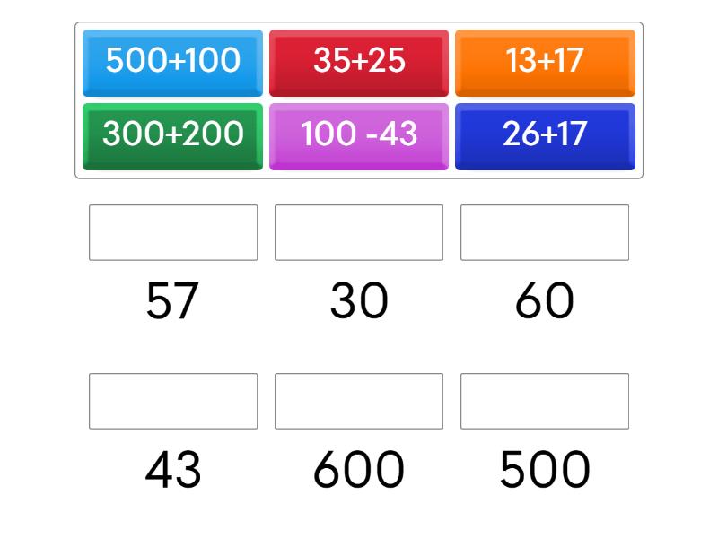 26+17 - 43, 100 -43 - 57, 300+200 - 500, 500+100 - 600, 13+17 - 30, 35+25 - 60,