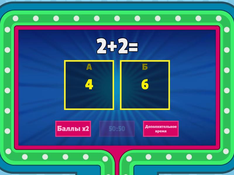 1) 2+2= a) 4 b) 6 2) 4+1= a) 5 b) 7 3) 1+1= a) 3 b) 2