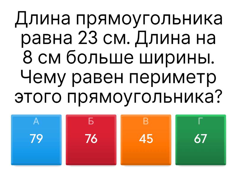 1) Длина прямоугольника равна 23 см. Длина на 8 см больше ширины. Чему равен периметр этого прямоугольника? a) 79 b) 76 c) 45 d) 67 2) 563 + 278 - (195 + 314) = a) 333 b) 332 c) 331 d) 330 3) (853 + 128) - 453= a) 528 b) 518 c) 538 d) 527 4) (77 + 58) — 50 = a) 85 b) 86 c) 87 d) 84 5) (596 + 89) - 89 = a) 596 b) 595 c) 89 d) 90 6) В каком ряду допущена ошибка? a) Нехочет, не любит, катаца b) Ходить, идти, карабкаться c) Не ест, гулять, красивый 7) В каких рядах все слова - прилагательные? a) Скользкий, красивая, умный b) Гулять, холодный, горячий c) Добрый, заботлтвый, милый d) Мороз, дорога, прилагательное 8) В каком ряду есть только однокоренные слова? a) Крик, кричит, крикун b) Вода, воды, водички c) Березка, березки, подберезовый 9) В каком ряду есть только формы слова? a) Соринка, сорняк, сорвал b) Поле, поля, в поле c) Тетрадка, тетрадки, тетрадный