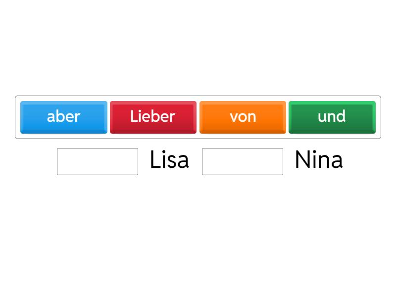 ____ Lisa ____ Nina Wie ____ es ____ ____ geht ____ gut. Ich ____ dir ____ von ____ Familie. ____ ____ heißt ____ und meine ____ heißt ____ Ich ____ eine ____ ____ heißt ____ ____ ____ ____ Schwester? Ich ____ ____ Fußball ____ meiner Familie. ____ Grüße, ____ Samantha.