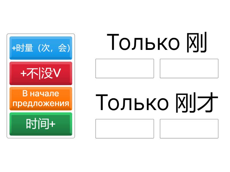Только 刚: 时间+, +时量(次,会), Только 刚才: +不|没V, В начале предложения,