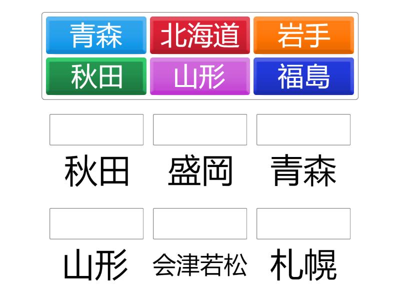 北海道 - 札幌, 青森 - 青森, 岩手 - 盛岡, 秋田 - 秋田, 山形 - 山形, 福島 - 会津若松,