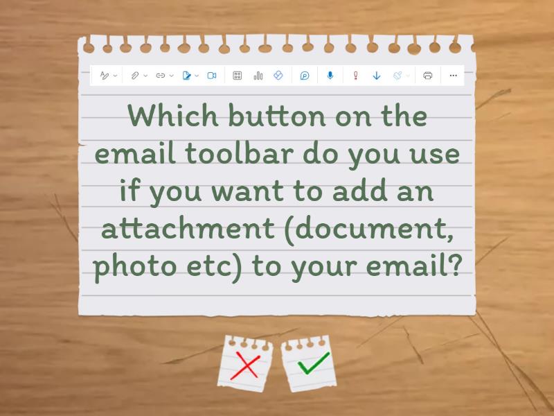 Whose email address do you add in the 'to' box? - the person who needs to read, act on or reply to your email, Who is the cc box used for? - For anyone you want to know the information in the email but they don't need to act or reply, Who can see email addressed that you put in the bcc box? - Only you. We usually use bcc when sending a message to a large group of people but we want to keep each email address private, What information should you add to the subject line? - a short summary of the topic of the email with any action or timeframe needed, Which button on the email toolbar would help you to make some of the words bold? - The B icon, Which button on the email toolbar do you use if you want to add an attachment (document, photo etc) to your email? - The paperclip icon, Which button on the email toolbar do you use if you want to tell the reader it is very important? - The priority icon (exclamation mark) , What is this part of an email called? - Your signature. They can be added and saved under settings., Which would you click if you wanted to check the spelling and grammar of your email? - The editor button., What does the send button look like? - An arrow ,