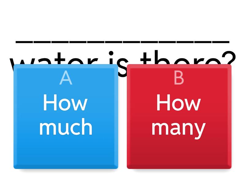 1) ____________ water is there? a) How much b) How many 2) ________ apples are there? a) How many b) How much 3) ____________ sisters have you got? a) How many b) How much 4) ___________ meat is there in the fridge? a) How much b) How many 5) _____________ oranges are there? a) How many b) How much 6) ____________ juice is there? a) How much b) How many 7) ____________ bread have we got? a) How much b) How many 8) ____________ butter is there in the fridge? a) How much b) How many 9) ____________ sugar is there? a) How much b) How many 10) ____________ tomatoes do you need to make a salad? a) How many b) How much 11) ____________ biscuits do you want? a) How many b) How much 12) ____________ mangoes are there ? a) How many b) How much 13) ____________ flour is there? a) How much b) How many 14) ____________ butter do you need for the cake? a) How much b) How many 15) Do we need … eggs for the cake ? a) many b) much 16) There isn't … milk left a) much b) many 17) Are there … carrots ? a) many b) much 18) I don't drink … cola a) much b) many 19) We haven't got … homework a) much b) many 20) Toby hasn't got … pets a) many b) much