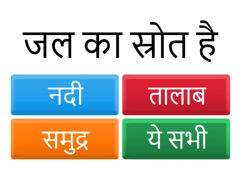 1) जल का स्रोत है a) नदी b) तालाब c) समुद्र d) ये सभी 2) जल प्रदूषण होता है a) कचरा फेंकना b) सीवेज का पानी c) a,b दोनों d) इनमें से कोई नहीं 3) नदी मच्छलियाँ कम क्यों हो गई? a) शेर के कारण b) गंदगी के कारण c) हाथी के कारण d) पेड़ के कारण 4) नदी कहाँ से निकाल रही थी? a) घर से b) कुए से c) पहाड़ से d) आसमान से