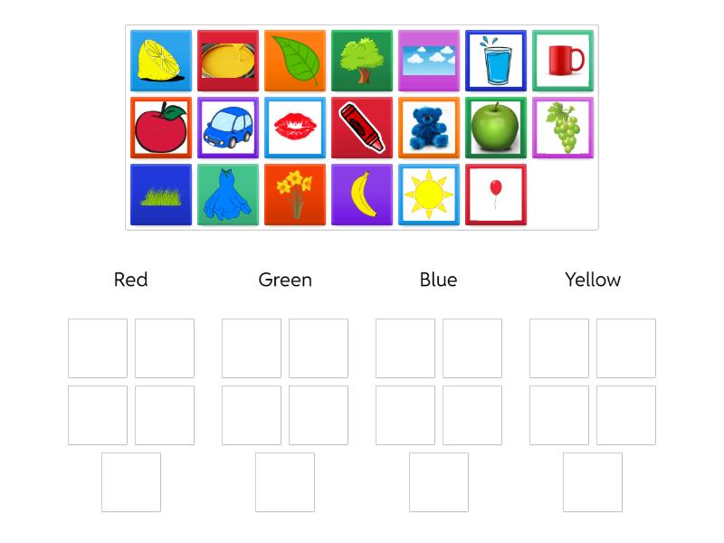Red: , , , , , Green: , , , , , Blue: , , , , , Yellow: , , , , ,