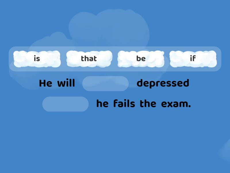 He will ____ depressed ____ he fails the exam. If you ____ a bigger salary, you would ____ more unnecessary things. If I ____ stayed in university, I ____ ____ a better job. We ____ never ____ the keys if we ____ look for them. More people ____ go to the cinema ____ movies were ____. They ____ ____ ____ him if I hadn't ____ them the money. I would ____ be ____ so much if I had ____ breakfast this morning. If all countries ____ the same language, ____ wouldn't ____ cultural diversity. Our parents would ____ ____ us something if we had ____ them to.