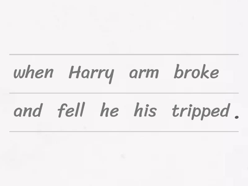 Harry broke his arm when he tripped and fell., I made a lot of money while I was working for my uncle., They bought new clothes while they were shopping at Target., We didn't get cold while we were waiting at the bus stop., You didn't buy milk when you were at the grocery store., While I was cooking, I burned my finger., I burned my finger while I was cooking., Chua dropped her wallet while she was getting into the car., Chua was getting into the car when she dropped her wallet.,