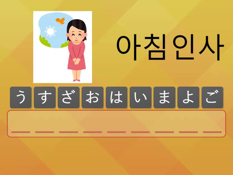 おはようございます - 아침인사, こんにちは - 점심인사, こんばんは - 저녁인사, さようなら - 안녕히가세요, じゃあね - 안녕, 잘가, いってきます - 다녀오겠습니다, ただいま - 다녀왔습니다, ありがとう - 고마워, おやすみ - 잘자, ごめん - 미안해, すみません - 미안합니다,
