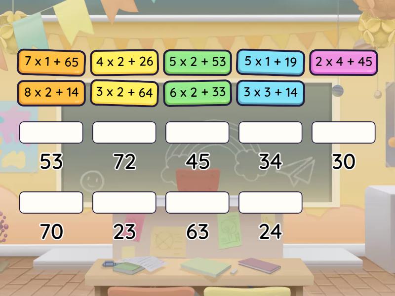 3 x 3 + 14 - 23, 4 x 2 + 26 - 34, 5 x 1 + 19 - 24, 6 x 2 + 33 - 45, 7 x 1 + 65 - 72, 8 x 2 + 14 - 30, 2 x 4 + 45 - 53, 3 x 2 + 64 - 70, 5 x 2 + 53 - 63,