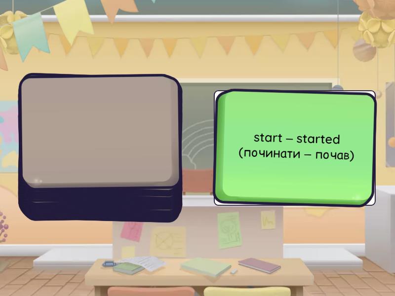 go – went (йти – пішов), have – had (мати – мав), do – did (робити – зробив), get – got (отримувати – отримав), make – made (робити/виготовляти – зробив), say – said (казати – сказав), take – took (брати – взяв), come – came (приходити – прийшов), see – saw (бачити – побачив), know – knew (знати – знав), give – gave (давати – дав), find – found (знаходити – знайшов), think – thought (думати – подумав), tell – told (розповідати – розповів), leave – left (залишати – залишив), feel – felt (відчувати – відчув), bring – brought (приносити – приніс), begin – began (починати – почав), meet – met (зустрічати – зустрів), buy – bought (купувати – купив), break – broke (ламати – зламав), choose – chose (вибирати – вибрав), drink – drank (пити – пив), drive – drove (водити/керувати – водив/керував), eat – ate (їсти – їв), forget – forgot (забувати – забув), hear – heard (чути – почув), lose – lost (губити/втрачати – загубив/втратив), mean – meant (означати/мати на увазі – означав/мав на увазі), pay – paid (платити – заплатив), put – put (класти – поклав), read – read (читати – читав) (у минулому часі читається як "ред"), sell – sold (продавати – продав), send – sent (надсилати – надіслав), spend – spent (витрачати/проводити – витратив/провів), work – worked (працювати – працював), play – played (грати – грав), walk – walked (гуляти/йти пішки – гуляв/йшов), talk – talked (розмовляти – розмовляв), live – lived (жити – жив), like – liked (подобатися – подобалося), watch – watched (дивитися – дивився), listen – listened (слухати – слухав), cook – cooked (готувати – готував), clean – cleaned (прибирати – прибирав), open – opened (відкривати – відкрив), close – closed (закривати – закрив), start – started (починати – почав), finish – finished (закінчувати – закінчив), stay – stayed (залишатися – залишався), visit – visited (відвідувати – відвідав), travel – travelled (подорожувати – подорожував), move – moved (рухатися/переїжджати – рухався/переїхав), wait – waited (чекати – чекав), wash – washed (мити – мив), look – looked (дивитися/виглядати – дивився/виглядав), study – studied (вивчати – вивчав), enjoy – enjoyed (насолоджуватися – насолоджувався), rain – rained (йти (про дощ) – йшов дощ), call – called (дзвонити – дзвонив), use – used (використовувати – використовував), need – needed (потребувати – потребував), want – wanted (хотіти – хотів), decide – decided (вирішувати – вирішив), invite – invited (запрошувати – запросив).