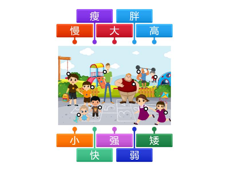 高, 大, 小, 矮, 强, 弱, 快, 慢, 瘦, 胖.