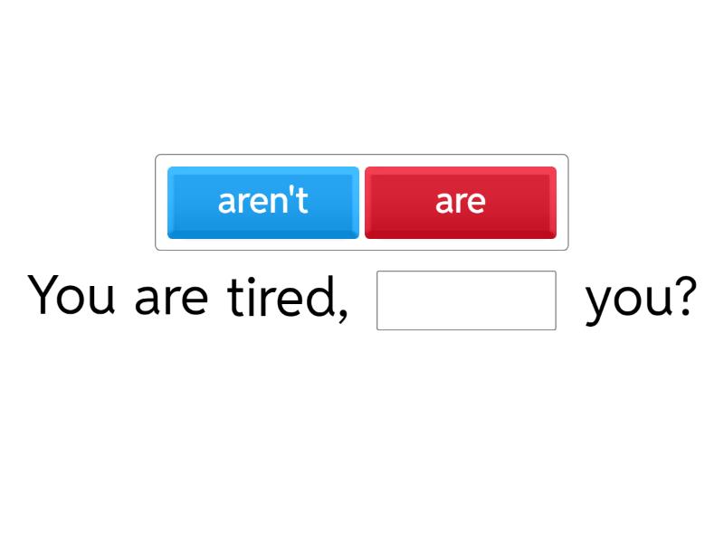 You are tired, ____ you? You'll tell me the truth, ____ you? You have never done this before, ____ you? Your best friend can play the piano, ____ he? You said we would arrive on time, ____ you? It's a nice weather, ____ it? But you didn't make a mistake in the test, ____ you? You love Minecraft, ____ you? You father plays Minecraft together with you, ____ he?