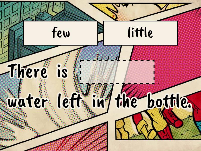 There is ____ water left in the bottle. I put ____ sugar in your coffee. He has ____ friends in the city. I have ____ ideas for the project. ____ students understood the lesson. We still have ____ time before the movie starts. They bought ____ new clothes for Ana. She has ____ interest in sports. I have ____ patience when I’m tired. There’s ____ milk in the fridge. Just enough for one coffee. The good restaurants are closed. We have ____ options now. There are ____ buses running late at night. Can you wait ____ longer? Can I take ____ apples with me? I will be there in ____ minutes. Wait for me! I speak ____ English.