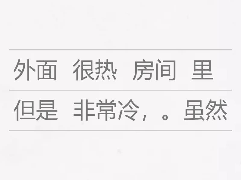虽然 外面 非常冷, 但是 房间 里 很热 。, 从 学校 到 火车站 要 多长时间 ?, 她 穿 着 白色 的 裙子 。qúnzi, 我 已经 吃过 西瓜 了 。,