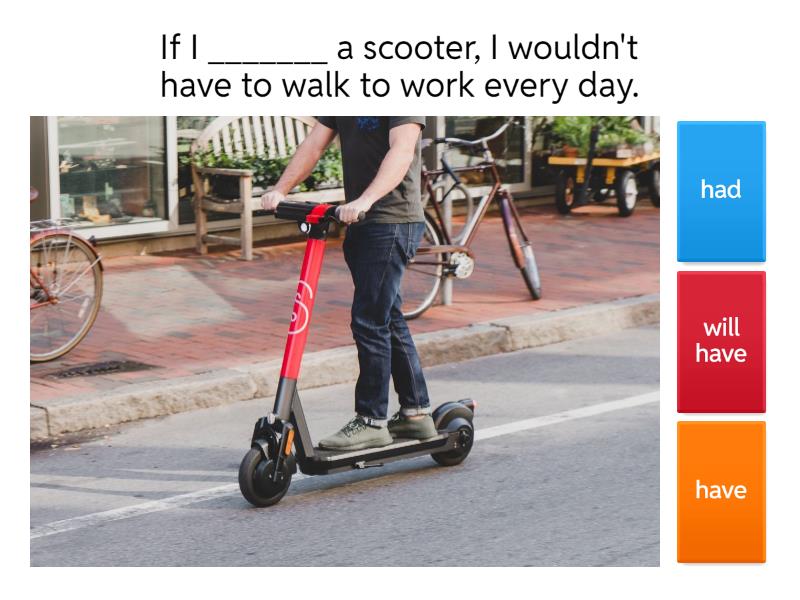 1) If I _______ a scooter, I wouldn't have to walk to work every day.   a) had b) will have c) have 2) If I won the lottery, I __________ a big house on the ocean. a) buy b) would buy c) bought 3) If I ______ you, I would go to the doctor immediately. a) were b) was c) am 4) What would you do if you _______ a wallet in the street? a) found b) find c) would find 5) I ______ forgive Sophie if I were you. a) would b) won't c) will 6) If I were you, I _________ Kevin the truth.  a) will tell b) would tell c) could tell 7) What would you do if you ________ a poisonous snake? a) see b) saw c) did see 8) If I ___________ time, I would help you.  a) have b) had c) will have 9) If my son got a PS4 for his birthday, he ____________ the happiest kid on Earth. a) were b) would be c) will be 10) If I didn't know you, I.........you were crazy. a) thought b) would think c) will think 11) If you had a bigger salary, you.........more unnecessary things. a) would buy b) will buy c) buy 12) If it..........for Tom, I wouldn't be here. a) won't be b) weren't c) isn't 13) If they had this player, they.........a single match. a) wouldn't lose b) won't lose c) didn't lost 14) If you ........more careful, you wouldn't have had an accident. a) had been b) are c) were 15) If I had seen you, I .......... hello. a) will say b) would have said c) would say 16) I ......... a photo if I had brought my camera with me. a) will take b) would take c) would have taken 17) She would have gone to your birthday party if she........... sick. a) won't be b) hadn't been c) wouldn't be 18) Would you have told me if you........ about it? a) will know b) would know c) would known 19) What would you have done if you ....... me? a) had been b) are c) were 20) If it.........., would you have had the picnic? a) would rain b) will rain c) had rained 21) I _____ here if I wasn't interested in what you are offering. a) wasn't b) wouldn't be c) won't be 22) I don't know the answer. If I knew the answer, I _____ you. a) 'd tell b) 'll tell c) told 23) I'm sure if you _____ the manager, you'd take better decisions. a) were b) 'd be c) .are 24) You _____ rich if every person in this country gave you one dollar. a) were b) .'ll be c) 'd be 25) If there are any news, I _____ you immediately. a) 'd inform b) 'll inform c) informed