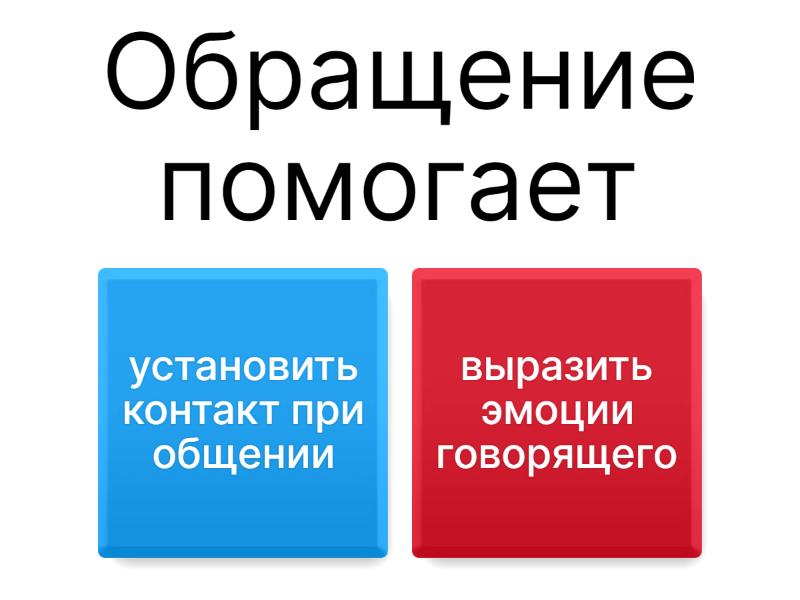 1) Обращение помогает a) установить контакт при общении b) выразить эмоции говорящего 2) Звательный падеж в современном русском языке a) используется b) не используется 3) Обращение выделяется a) запятыми b) не выделяется c) восклицательным знаком d) многоточием 4) Бывают риторические a) отрицания b) вопросы c) обращения d) восклицания 5) Обращение бывает a) односоставным b) распространенным c) нераспространенным d) двусоставным
