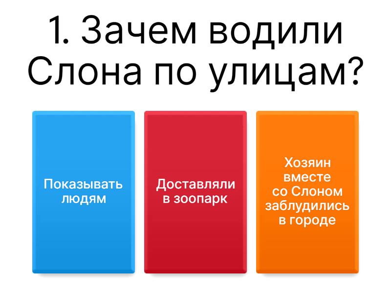 1) 1. Зачем водили Слона по улицам? a) Показывать людям b) Доставляли в зоопарк c) Хозяин вместе со Слоном заблудились в городе 2) 2. Как Моська вела себя по отношению к Слону? a) Боялась его и убегала b) Гавкала на него и кидалась c) Тёрлась об его ноги 3) 3. Чего хотела Моська? a) Чтобы все думали, что она очень сильная b) Чтобы Слон отдал ей еду c) Чтобы Слон боялся её 4) 4. Хотела ли Моська драться со Слоном? a) Да, она искренне считала себя сильнее всех b) Нет, она просто хотела отпугнуть Слона от своих щенков c) Нет, она лишь хотела привлечь к себе внимание других собак 5) Какую черту характера высмеивает И. А. Крылов в этой басне? a) Жадность b) Глупость c) Хвастливость
