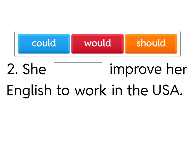2. She ____ improve her English to work in the USA. 3. If I were you, I ____ stay at home. 4. My sister was a genius: at 4, she ____ already speak four foreign languages. 5. ____ I wait for her or not? 6. You ____ go there, you will find him. 7. I ____ have given it back if I had seen her. 8. Teacher, ____ you please explain to me the use of the present perfect continuous? 9. When he was in his teens, Billy ____ stay up all night playing computer games. 10. You ____ have listened to him! 11. Which countries ____ you go to if you travelled round the world?