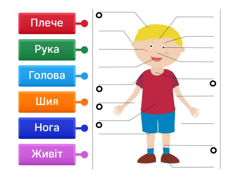Голова, Плече, Шия, Рука, Живіт, Нога.