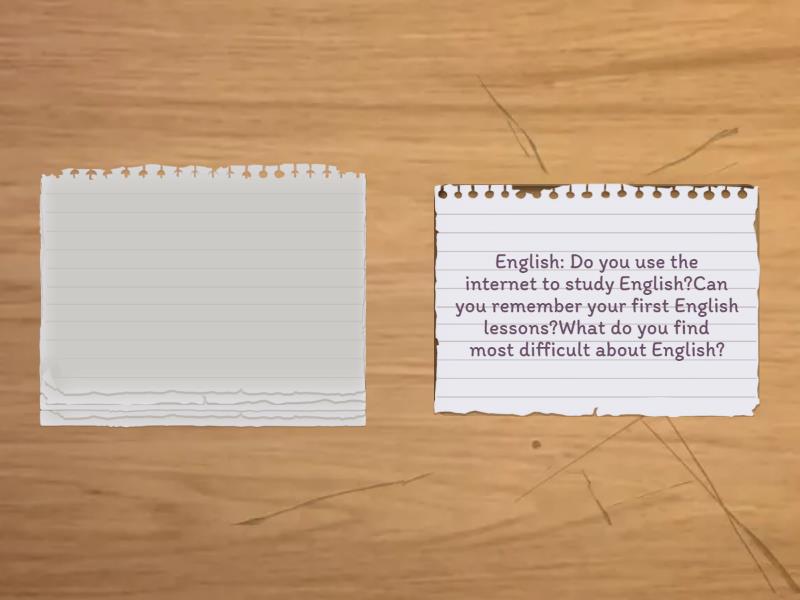 Your Country_ Is there anything you would like to learn about your country?Is there an interesting area of your country that you would like to visit?Could you tell me something about the area where you grew up? Could you tell me something about the area where you grew up?, English: Do you use the internet to study English?Can you remember your first English lessons?What do you find most difficult about English?, Daily Life: How much time do you spend at home? What's your favourite food? Are you planning to do anything special this weekend?, Sports: Are you interested in sport? Do you plan to take up a new sport in the future? What are the most popular sports in your country?, Family and friends: Do you have a large family? Do you and your friends share the same ideas and opinions?Tell me about your best friend?, Entertainment: Do you like going to the cinema? Do you enjoy shopping? Do you enjoy playing computer gam.