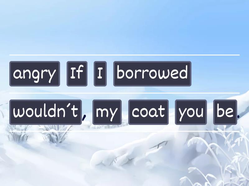 If you borrowed my coat, I wouldn´t be angry., Your teacher wold help you if you asked her., If you didn´t drink water, you would be thirsty., My parents would be angry if I didn´t follow the rules at home., If products had less packaging, we would reduce household rubbish., If I were a bird, I would be a hummingbird., If you joined a sports club, you´d make new friends., What would you do if you were a famous person?, If people didn´t travel by plane all the time, they would reduce their carbon footprint.,