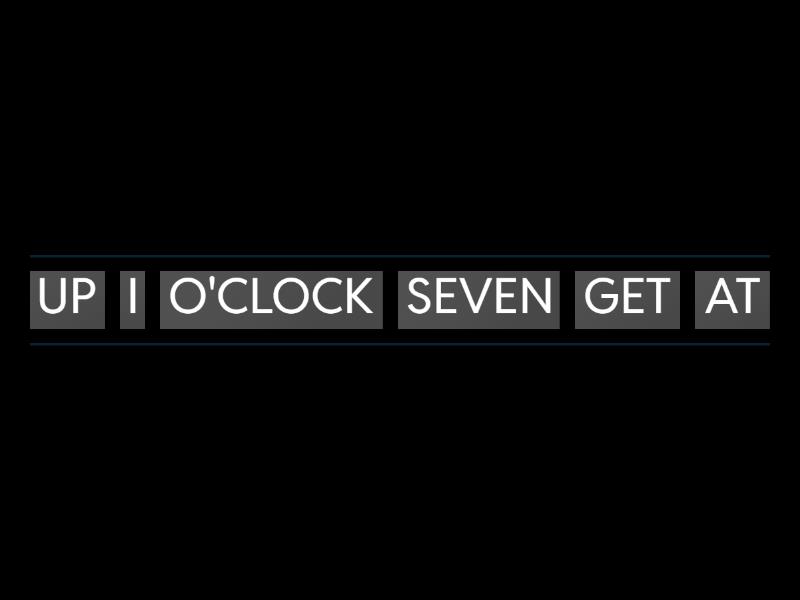 I GET UP AT SEVEN O'CLOCK , YOU GO TO SCHOOL AT QUARTER TO EIGHT, I HAVE DINNER AT TEN O'CLOCK, I BRUSH MY TEETH IN THE MORNING, YOU HAVE BREAKFAST AT HALF PAST EIGHT, YOU HAVE A SHOWER AT FIVE O'CLOCK, I DO MY HOMEWORK AT QUARTER TO SEVEN, YOU GO TO BED AT HALF PAST ELEVEN, I HAVE LUNCH AT TWELVE O'CLOCK, YOU WATCH TV AT HALF PAST THREE,