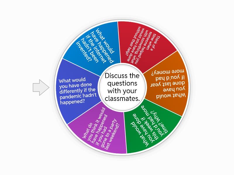 1) What would have happened if the internet hadn't been invented? 2) Think of a time when someone helped you with something, what would you have done without their help? 3) What would you have done last year if you’d had more money? 4) What would you have done this week if you’d had more time? Why? 5) What do you think it would have happened if you had gone to a party last weekend? 6) What would you have done differently if the pandemic hadn't happened?