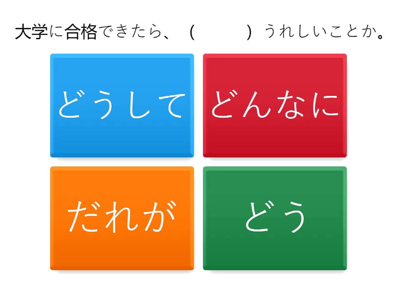 1) 大学に合格できたら、(   )うれしいことか。 a) どうして b) どんなに c) だれが d) どう 2) 日本では6月から7月(   )、雨が多い日が続く。 a) にくわえて b) のところ c) の最中に d) にかけて 3) 私はいつか海外で仕事を(   )と思っています。 a) するよう b) すろう c) するものか d) しよう 4) 明日は9時に出発しますから、遅れない(   )。 a) ようだ b) ことか c) ように d) わけじゃない 5) アルバイト(   )、すぐ見つかると思ったが、なかなか見つからなかった。 a) なんて b) のに c) のは d) なのに 6) 先生が言う(   )勉強すれば、いい成績がとれますよ。 a) うちに b) とおりに c) ことに d) うえに 7) 今からがんばって勉強した(   )、もうテストには間に合わない。 a) っけ b) のに c) って d) ても 8) スイッチを入れたのに動かない。こわれている(   )。 a) のようだ b) だっけ c) べきだ d) みたいだ 9) あのう、背中にごみが(   )よ。 a) つけておきます b) ついておきます c) つけられます d) ついています 10) あっ、もうすぐ彼の誕生日だ。プレゼントを買いに(   )。 a) 行くっけ b) 行っちゃ c) 行かなきゃ d) 行くっきゃ 11) 晩ごはんはいつも自分のうちで食べますが、ときどきレストランで食べる(   )。 a) こともあります b) のもあります c) のはあります d) ところもあります 12) 木村さんが手伝ってくれた(   )、仕事が早く終わった。 a) せいで b) からで c) おかげで d) ためで 13) 仕事を辞めたら、毎日暇で(   )。 a) しょうがない b) べきではない c) はずがない d) わけじゃない 14) それはピカソが(  )(  )( ★ )(  )を知っていますか。 a) 絵だ b) こと c) かいた d) という 15) サッカーが好きだから(  )(  )( ★ )(  )じゃない。 a) わけ b) サッカーが c) 上手な d) といって 16) 川田さんはあんなに(  )(  )( ★ )(  )に違いない。 a) 住んでいる b) 大きい家に c) お金持ち d) のだから 17) 待ち合わせに(  )(  )( ★ )(  )だ。 a) から b) 遅れた c) 寝坊した d) のは 18) 今晩、(  )(  )( ★ )(  )ので、気を付けてください。 a) おそれが b) 来る c) ある d) 台風が