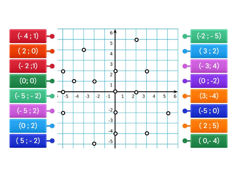 ( 3 ; 2), (- 2 ;1), ( 2 ; 5), ( 0,- 4), (- 5 ; 2), ( 5 ; - 2), (- 5 ; - 2), ( 2 ; 0), (0 ; -2), (0 ; 2), (- 4 ; 1), (3; -4), (0; 0), (- 3; 4), (-5 ; 0), (-2 ; - 5).