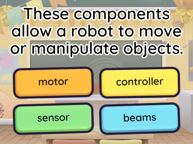 1) These components allow a robot to move or manipulate objects. a) motor b) controller c) sensor d) beams  2) This is the field of study that combines mechanical engineering, electrical engineering, and computer science to design and build robots. a) Robots b) Mechatronics c) Robotics d) Mechanism 3) It refers to the part of a robot that receives information from the environment. a) motors b) sensors c) actuators d) controllers 4) What type of robot is designed to resemble and mimic human behavior? a) Autonomous robot b) Humanoid robot c) Mobile robot d) Industrial robot 5) Which type of robot is commonly used in hospitals for surgeries or patient care? a) Agricultural robot b) Military robot c) Medical robot d) Entertainment robot 6) Which of the following is an example of an educational robot? a) Mars Rover b) LEGO Mindstorms c) ASIMO d) Roomba 7) What does the term "mechatronics" refer to? a) The study of mechanics only b) Electronics in medical technology c) Integration of mechanical, electronic, and computer systems d) Mechanical drawing techniques 8) Which of the following is the main controller used in most robotic systems? a) controller b) sensors c) motors d) actuators 9) Which of the following is NOT a component of a typical robotics components system? a) Power source b) Sensor c) Actuator d) printer 10) Which engineering fields are mainly involved in mechatronics? a) Civil and Textile b) Mechanical, Electrical, and Computer c) Aeronautics and Chemical d) Architecture and Environmental