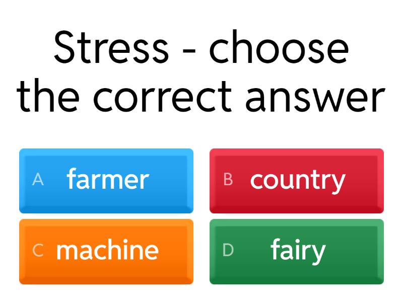 1) Stress - choose the correct answer a) farmer b) fairy c) country d) machine 2) Stress - choose the correct answer a) damage b) invent c) destroy d) demand 3) Stress - choose the correct answer a) person b) surgeon c) purpose d) possess 4) Stress - choose the correct answer a) ancient b) attract c) alive d) across 5) Stress - choose the correct answer a) sentence b) suggest c) species d) system 6) Stress - choose the correct answer a) writer b) carefully c) industry d) comply 7) Stress - choose the correct answer a) abnormal b) initial c) innocent d) impatient 8) Stress - choose the correct answer a) habitable b) famously c) geneticist d) communist 9) Stress - choose the correct answer a) specific b) coincide c) inventive d) regardless 10) Stress - choose the correct answer a) automatic b) reasonable c) mathematics d) preservation 11) Stress - choose the correct answer a) satisfy b) sacrifice c) apology d) richness 12) Stress - choose the correct answer a) brotherhood b) vertical c) opponent d) penalty 13) Stress - choose the correct answer a) doubtful b) solidify c) politics d) stimulate 14) Pronunciation - choose the correct answer a) improved b) returned c) arrived d) stopped 15) Pronunciation - choose the correct answer a) champagne b) chaos c) scheme d) chemist 16) Pronunciation - choose the correct answer a) islander b) alive c) vacancy d) habitat 17) Pronunciation - choose the correct answer a) gossip b) gentle c) gamble d) garage 18) Pronunciation - choose the correct answer a) daunt b) astronaut c) vaulting d) aunt 19) Pronunciation - choose the correct answer a) clear b) treasure c) spread d) dread 20) Pronunciation - choose the correct answer a) about b) shout c) wounded d) count 21) Pronunciation - choose the correct answer a) train b) wait c) afraid d) chair 22) Pronunciation - choose the correct answer a) easy b) meaning c) bread d) heat 23) Pronunciation - choose the correct answer a) dozen b) bottle c) soccer d) orange 24) Pronunciation - choose the correct answer a) resources b) stages c) preserves d) focuses 25) Pronunciation - choose the correct answer a) sports b) households c) minds d) plays 26) Pronunciation - choose the correct answer a) houses b) horses c) matches d) wives