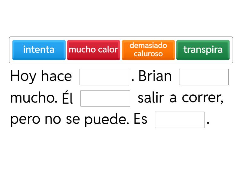 Hoy hace ____. Brian ____ mucho. Él ____ salir a correr, pero no se puede. Es ____. Entonces, Brian ____: "¿Por qué ____ a mí mismo?" En lugar de correr, Brian ____. Es de la ____ Omega. El ____ es moderno y ____ muy bien. Tiene muchas ____: mide los ____, la ____ y también la ____ del sueño. Brian dice: - Este reloj es muy ____. ¡Me gusta mucho! También mira un video sobre ____. Ve un dron pequeño que ____ por la ciudad. -¡Qué ____! - ____ Brian. -____ en el futuro. Brian cree que vivir con ____ puede ser ____. ____ del día, Brian llama a su primo en Nashville y le dice: -¡Vamos a ____ primos pronto! ¿____? El primo responde: -____. ¡Nos vemos muy pronto!