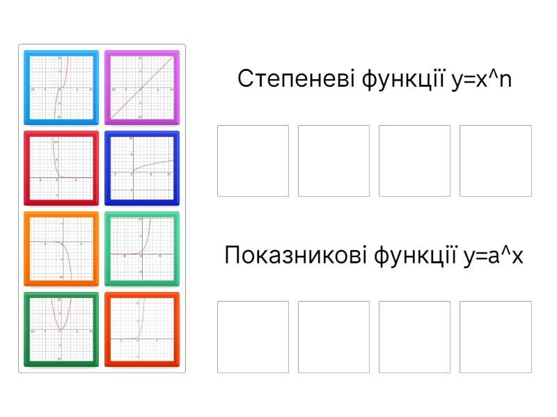 Степеневі функції y=x^n: , , , , Показникові функції y=a^x: , , , ,