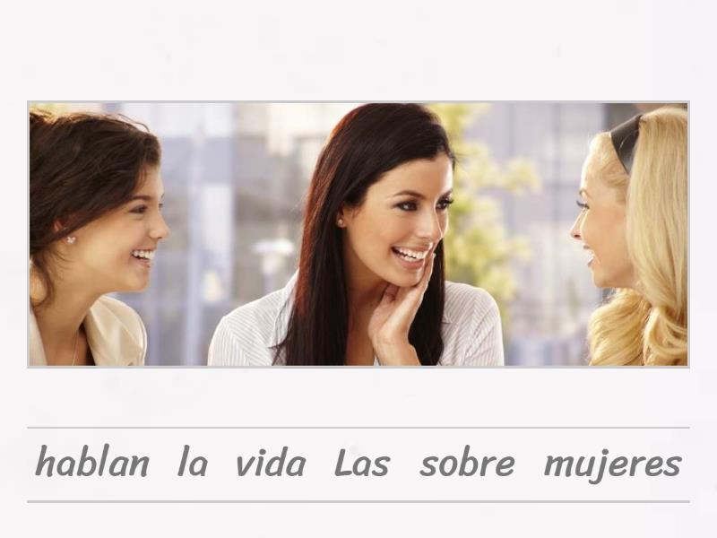 Las mujeres hablan sobre la vida, Los hombres hablan sobre el trabajo, Yo hablo sobre la política, Tú hablas sobre la comida italiana, Ella habla sobre el Juzgado, Nosotros hablamos sobre el pueblo, Vosotros habláis sobre España, Ellos hablan sobre los documentos,