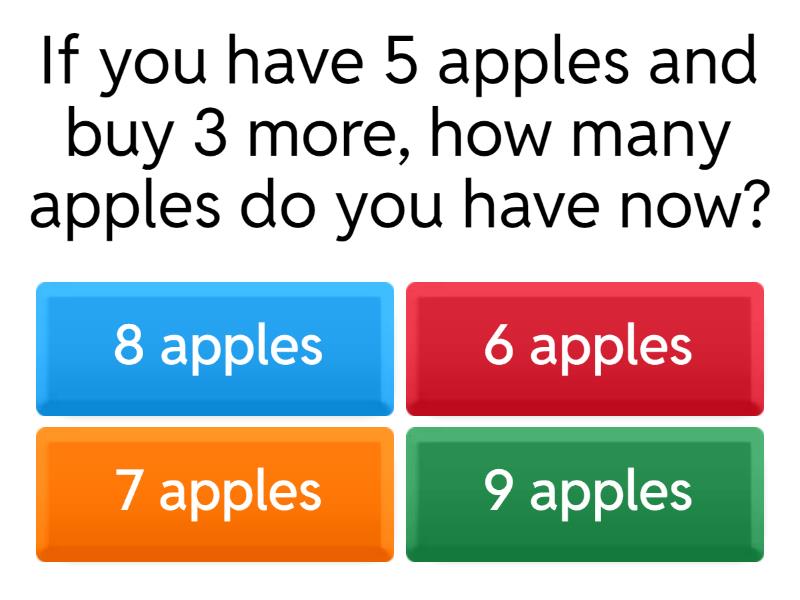 1) If you have 5 apples and buy 3 more, how many apples do you have now? a) 8 apples b) 6 apples c) 7 apples d) 9 apples 2) You have 10 candies and give 4 to a friend. How many candies do you have left? a) 6 candies b) 5 candies c) 7 candies d) 4 candies 3) There are 12 birds on a tree. 5 fly away. How many are left? a) 7 birds b) 8 birds c) 6 birds d) 5 birds 4) You have 15 marbles and find 5 more. How many marbles do you have now? a) 20 marbles b) 18 marbles c) 19 marbles d) 17 marbles 5) If you have 9 pencils and lose 3, how many pencils do you have left? a) 6 pencils b) 5 pencils c) 7 pencils d) 4 pencils 6) You have 8 balloons and get 7 more. How many balloons do you have now? a) 15 balloons b) 14 balloons c) 16 balloons d) 13 balloons 7) There are 20 cookies and you eat 5. How many cookies are left? a) 15 cookies b) 14 cookies c) 16 cookies d) 13 cookies 8) You have 11 books and buy 4 more. How many books do you have now? a) 15 books b) 14 books c) 16 books d) 13 books 9) If you have 7 oranges and give away 2, how many do you have left? a) 5 oranges b) 4 oranges c) 6 oranges d) 3 oranges 10) You have 13 stickers and get 6 more. How many stickers do you have now? a) 19 stickers b) 18 stickers c) 20 stickers d) 17 stickers 11) There are 18 fish in a tank. 3 are taken out. How many are left? a) 15 fish b) 14 fish c) 16 fish d) 13 fish 12) You have 14 crayons and lose 4. How many crayons do you have left? a) 10 crayons b) 9 crayons c) 11 crayons d) 8 crayons 13) If you have 6 bananas and buy 9 more, how many bananas do you have now? a) 15 bananas b) 14 bananas c) 16 bananas d) 13 bananas 14) You have 17 toys and give 7 away. How many toys do you have left? a) 10 toys b) 9 toys c) 11 toys d) 8 toys 15) There are 22 chairs and 5 are broken. How many chairs are left? a) 17 chairs b) 16 chairs c) 18 chairs d) 15 chairs