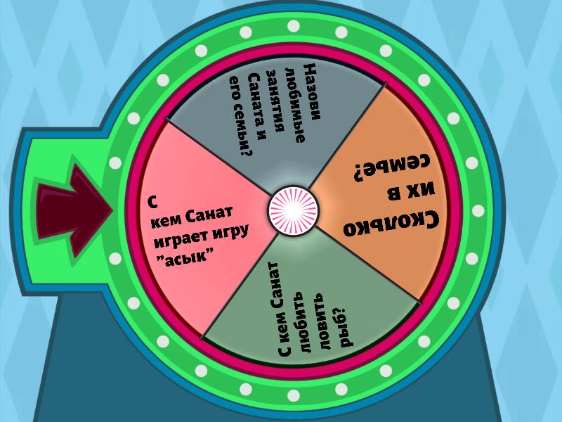 1) Назови любимые занятия Саната и его семьи? 2) Сколько их в семье? 3) С кем Санат любить ловить рыб? 4) С кем Санат играет игру "асык"