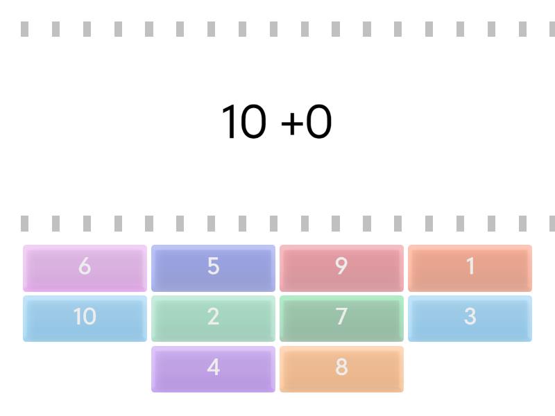 10 - 10 +0  , 9 - 5+4, 8 - 4+4, 7 - 3+4, 6 - 3+3, 5 - 3+2, 2 - 1+1, 1 - 0+1, 4 - 3+1, 3 - 2+1,