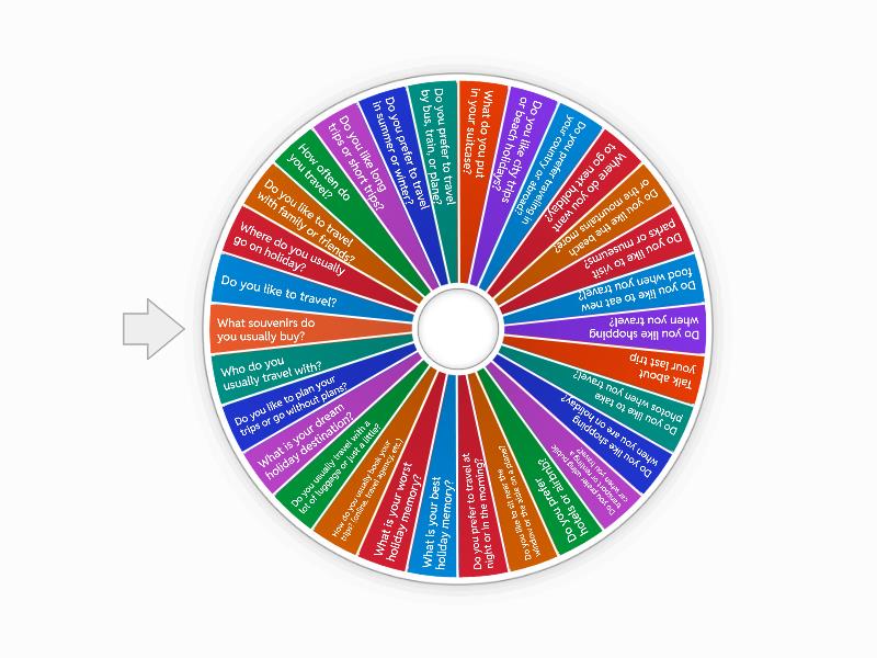 1) Do you like to travel? 2) Where do you usually go on holiday? 3) Do you like to travel with family or friends? 4) How often do you travel? 5) Do you like long trips or short trips? 6) Do you prefer to travel in summer or winter? 7) Do you prefer to travel by bus, train, or plane? 8) What do you put in your suitcase? 9) Do you like city trips or beach holidays? 10) Do you prefer traveling in your country or abroad? 11) Where do you want to go next holiday? 12) Do you like the beach or the mountains more? 13) Do you like to visit parks or museums? 14) Do you like to eat new food when you travel? 15) Do you like shopping when you travel? 16) Talk about your last trip 17) Do you like to take photos when you travel? 18) Do you like shopping when you are on holiday? 19) Do you prefer using public transport or renting a car when you travel? 20) Do you prefer hotels or airbnb? 21) Do you like to sit near the window or the aisle on a plane? 22) Do you prefer to travel at night or in the morning? 23) What is your best holiday memory? 24) What is your worst holiday memory? 25) How do you usually book your trips? (online, travel agency, etc.) 26) Do you usually travel with a lot of luggage or just a little? 27) What is your dream holiday destination? 28) Do you like to plan your trips or go without plans? 29) Who do you usually travel with? 30) What souvenirs do you usually buy?