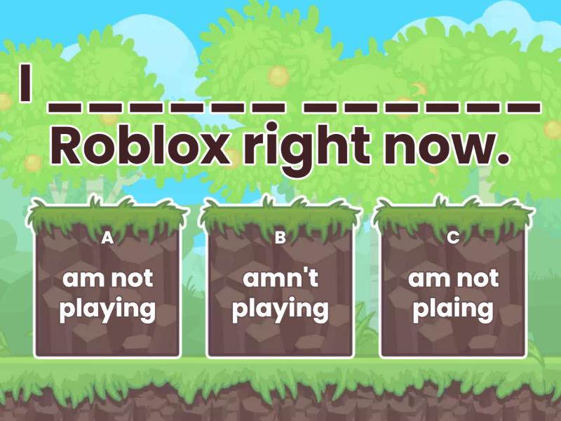 1) Eric _____ helping me right now. a) is b) does c) am 2) They _____ cutting the bread for breakfast at the moment. a) am b) do c) are 3) My grandfather _____ watering flowers in the garden. a) is b) are c) am 4) I _____ stopping the car right now. a) are b) is c) am 5) The baby ____ playing in the living room at the moment. a) is b) am c) are 6) They are _____ now. a) talks b) talking c) talk 7) I am _____ now. a) swim b) swims c) swiming d) swimming 8) They are _____ in the mountains at the moment. a) hike b) hikes c) hiking d) hikeing 9) Everybody _____ running now. a) is b) am c) are 10) The Smiths _____ _____ at the moment.  a) are eating b) is eatting c) eating 11) Henry _____ _____ at the moment. a) is running b) are running c) am running 12) Bonnie and Anson ______ _______ with their parents now. a) are having lunch b) is have lunch c) are have lunch 13) Which signal words should you use "Present Continuous?" a) every day b) at the moment c) always 14) Which signal words should you use "Present Continuous?" a) on weekends b) right now c) usually 15) Jonas ______ ______ chocolate in the store right now. a) is buying b) are buying c) buy 16) Sonia and Pia______ ______ maths at the moment. a) are studying b) don't study c) study 17) Sky ______ ______ the TV right now. a) doesn't fixes b) isn't fixing c) isn't fixxing 18) ______ Sigrid ______ on the stage now? a) Is , dancing b) Does , dances c) Is , dances 19) ______ Lucas ______ dinner with his friend at the moment? a) Is , having b) Does , has c) Is , hasing 20) I ______ ______ Roblox right now. a) am not playing b) amn't playing c) am not plaing