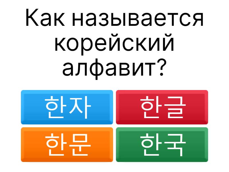 1) Как называется корейский алфавит? a) 한자 b) 한글 c) 한문 d) 한국 2) Какое минимальное количество букв в корейском слоге? a) 1 b) 2 c) 3 d) 4 3) Какое максимальное количество букв в корейском слоге? a) 2 b) 3 c) 4 d) 5 4) Какая буква всегда должна стоять на первом месте? a) Гласная b) Согласная 5) Как читается слог "아"?  a) а b) на c) о d) но 6) Как читается слог "어"? a) а b) на c) о d) но 7) Как читается слог "예"? a) е b) не c) э d) нэ 8) Как читается слог "걔"? a) ке b) кэ c) не d) нэ 9) Как читается слог "히"? a) и b) хи c) ы d) хы 10) Как читается слог "약"? a) няк b) як c) нёк d) ёк 11) Какой звук дает дифтонг "ㅝ"? a) уа b) уи c) уо d) уэ 12) Какой звук дает дифтонг «ㅘ»? a) уа b) уи c) уо d) уэ 13) Какой звук дает дифтонг «ㅚ»? a) уа b) уи c) уо d) уэ 14) Какой звук дает дифтонг «ㅙ»? a) уа b) уи c) уо d) уэ 15) Какой звук дает дифтонг «ㅟ»? a) уа b) уи c) уо d) уэ 16) Какой звук дает дифтонг «ㅞ»? a) уа b) уи c) уо d) уэ 17) Какие звуки дает дифтонг “ㅢ”? a) ый, эй b) ый, и, э c) ый, и d) ый, и, э, эй 18) Выберите слово, означающее «студент». a) 학교 b) 학생 c) 대학교 d) 대학생 19) Выберите слово, означающее «страна». a) 노래 b) 나라 20) Выберите слово, означающее «радуга». a) 무지개 b) 지우개 21) Выберите слово, означающее «имя». a) 이틀 b) 어름 c) 아들 d) 이름 22) Выберите слово, означающее «человек». a) 사랑 b) 살 c) 사람 d) 사과 23) Выберите слово, означающее «яблоко» a) 사랑 b) 살 c) 사람 d) 사과 24) Какой звук дает буква «ㄹ» в слове "둘"? a) р b) рь c) ри d) ль 25) Какой звук дает буква "ㅂ" в слове "주부"? a) п b) пп c) пх d) б 26) Какой звук дает буква "ㄷ" в слове "가다"? a) т b) тт c) тх d) д 27) Какой звук дает буква "ㄷ" в слове "돈"? a) т b) тт c) тх d) д 28) Какой звук дает буква "ㄱ" в слове "누구"? a) к b) кк c) кх d) г 29) Заполните пропуск: "저_ 러시아 사람입니다." a) 는 b) 이 c) 은 d) 가 30) Заполните пропуск: "제 이름_ 다냐입니다." a) 는 b) 인 c) 은 d) 가