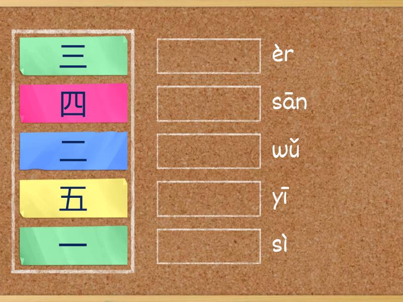 一 - yī, 二 - èr, 三 - sān, 四 - sì, 五 - wǔ,