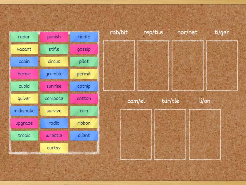 rab/bit: catnip, cotton, ribbon, gossip, rep/tile: milkshake, sunrise, compose, upgrade, hor/net: permit, curtsy, circus, survive, ti/ger: radar, vacant, pilot, cupid, cam/el: punish, quiver, tropic, cabin, tur/tle: grumble, riddle, stifle, wrestle, li/on: ruin, client, radio, heroic,