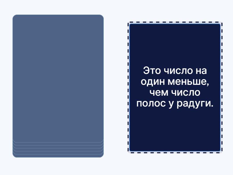 Это число на один меньше, чем число пальцев на руке., Это число на один больше, чем число хвостов у шести слонов., Это число на один меньше, чем число полос у радуги., Это число больше, чем число колёс у гоночного велосипеда, но меньше, чем сторон у квадрата., Это число больше, чем число ножек у стула, но меньше, чем число ушей у трёх мышей., Это число мы называем при счёте сразу после самого большого однозначного числа., Это число обозначает пару предметов..