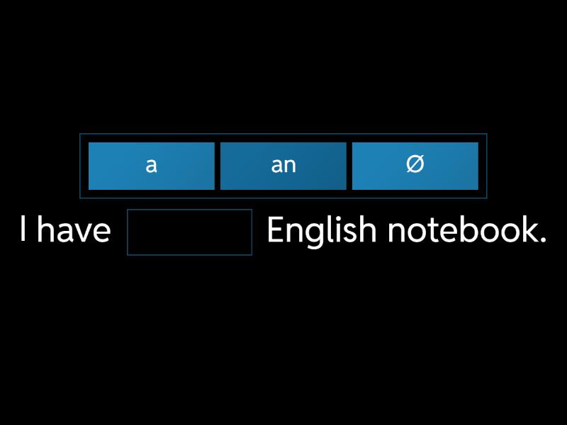 I have ____ English notebook. I have ____ cat. I have ____ egg. I can see ____ chairs. I have ____ rubber. I have ____ dog at home. I have ____ scissors.