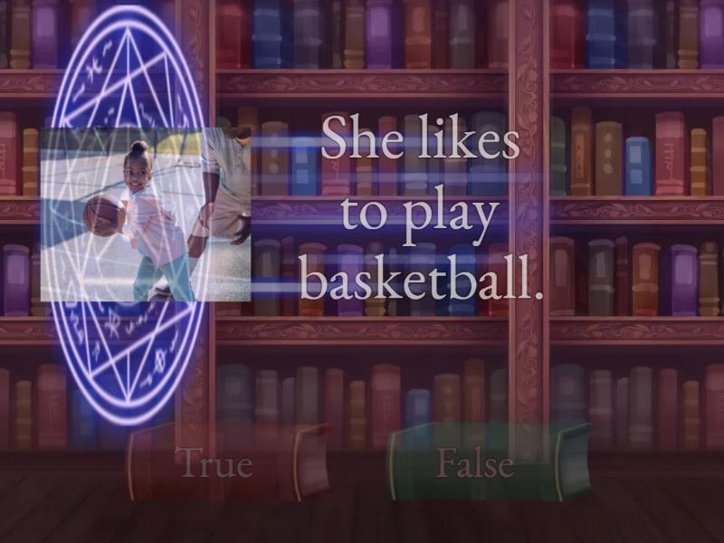 True: She likes to play basketball., He likes to ride a bike., He likes to go camping., Andy likes to visit his friend., She likes to dance., I like to go shopping., What do you like to do in your free time?, What does he like to do in his free time?, What does she like to do in her free time?, She likes to play video games., False: What does you like to do in your free time?, What do he like to do in his free time?, What does she likes to do in her free time?, My grandmother like to cook., I likes to watch TV., The boy likes to go shopping.,