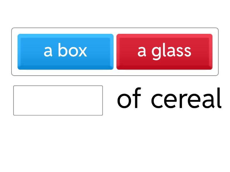 ____ of cereal ____ of biscuits ____ of olive oil ____ of orange juice ____ of rice ____ of Coke ____ of milk ____ of flour ____ of sugar a ____ of water